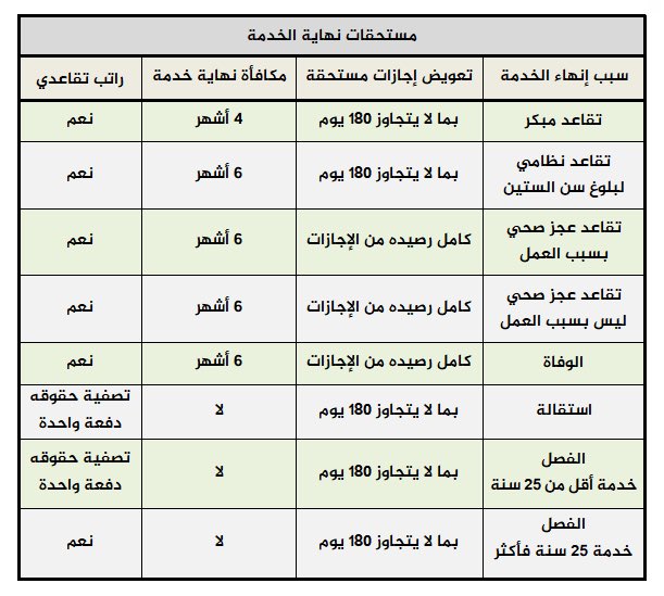 محمد الزارع Auf Twitter مستحقات نهاية الخدمة بجدول واحد رائع تقاعد مبكر تقاعد نظامي بلوغ السن تقاعد عجز صحي بسبب العمل تقاعد عجز صحي ليس بسبب العمل الوفاة استقالة الفصل