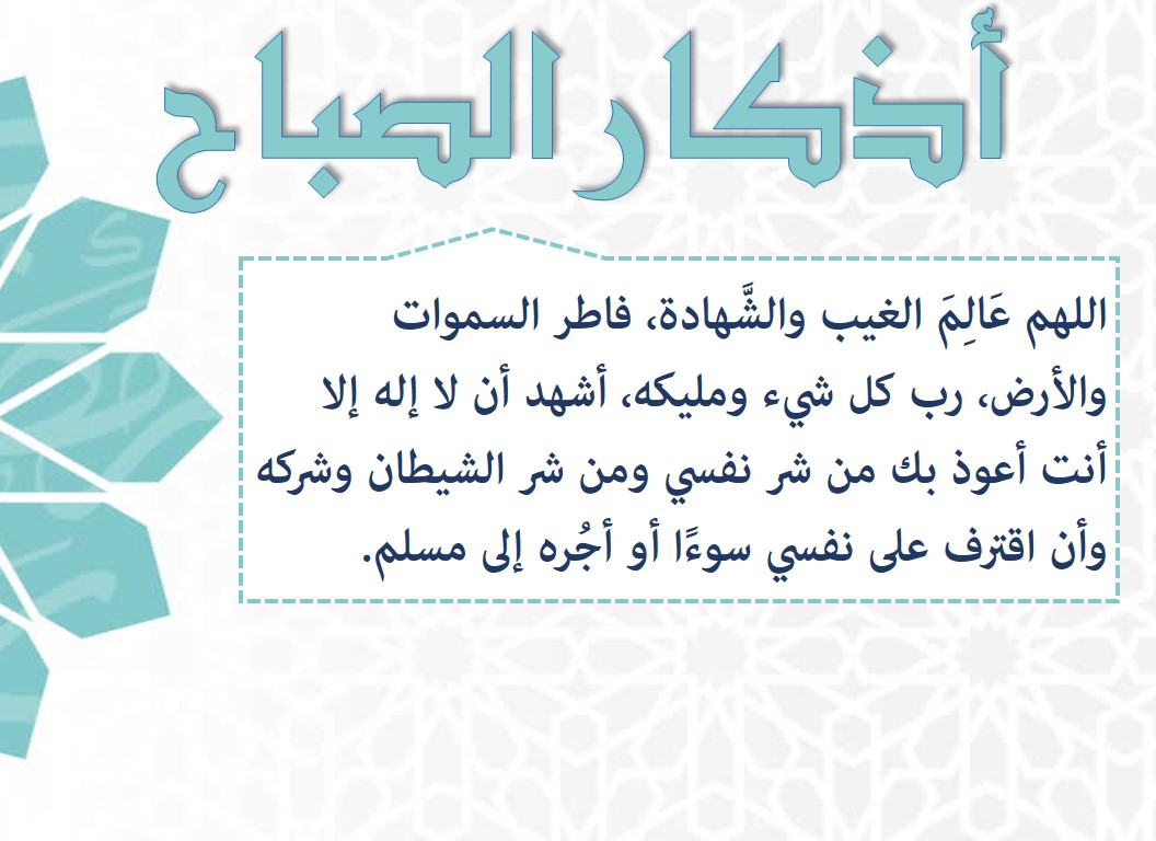 Athkar Muslim9 اذكار الصباح بسم الله الذي لا يضر مع اسمه شيء في الأرض ولا في السماء وهو السميع العليم 3 مرات رضيت بالله ربا وبالإسلام دين وبمحمد صلى الله عليه وسلم