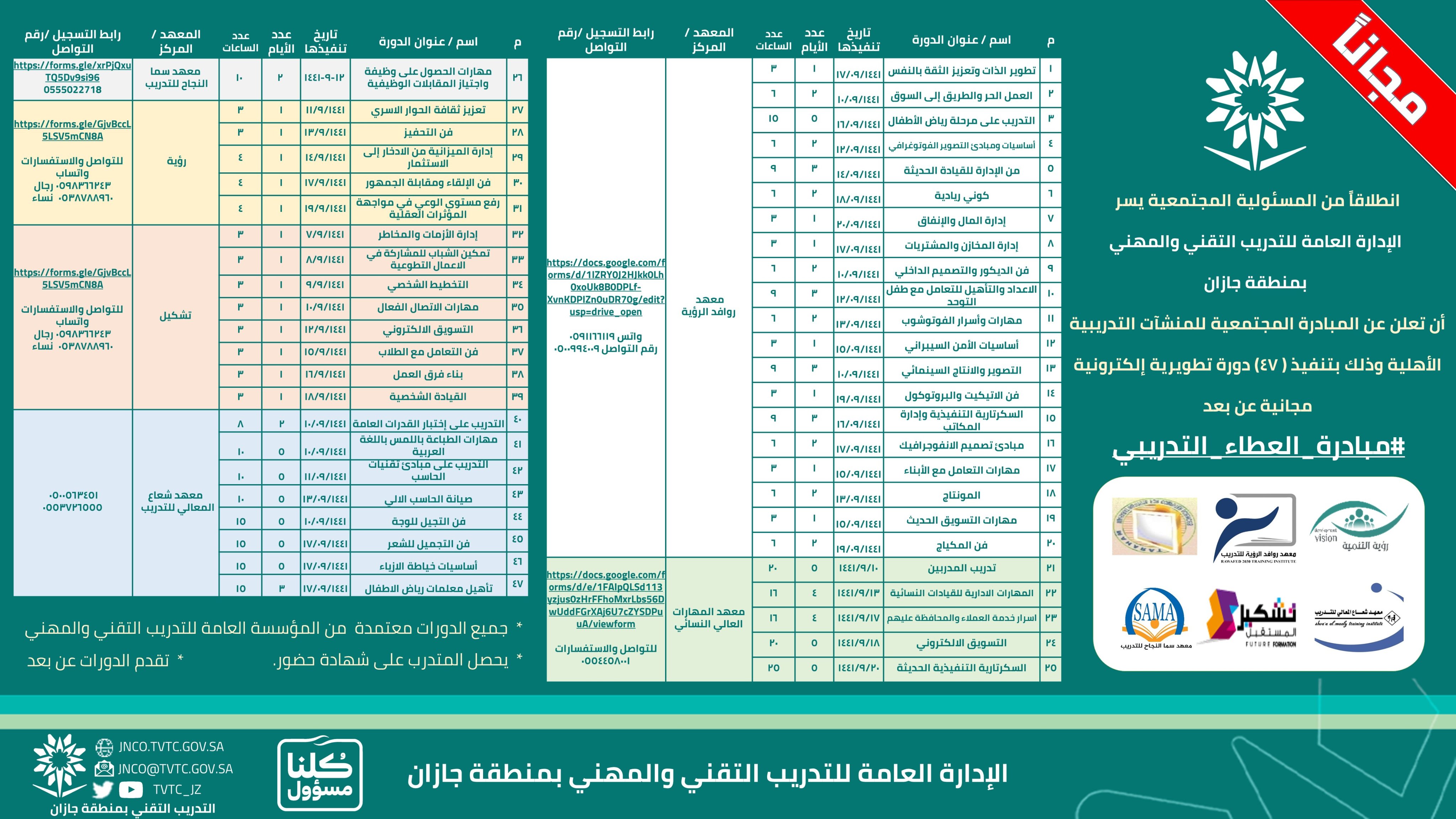 المؤسسة العامة للتدريب التقني والمهني بجازان. المؤسسة العامة للتدريب التقني والمهني بوابة الموظفين tvtc قامت المؤسسة العامة للتدريب التقني والمهني مجموعة من المسارات للتدريب في منظومة متدرجة من اجل اعداد القوى البشرية والتاهيل الفني في مستويات مختلفة وتعمل. You need to enable javascript to run this app. المؤسسة العامة للتدريب التقني والمهني تعنى المؤسسة العامة للتدريب التقني والمهني بتنمية الموارد البشرية الوطنية من خلال تدريبهم بما يسهم في سد احتياجات سوق العمل من القوى البشرية المؤهلة. فرصة استثمارية تعلن الكلية الرقمية للبنات بالرياض عن بدء فترة التقديم للمنافسة.